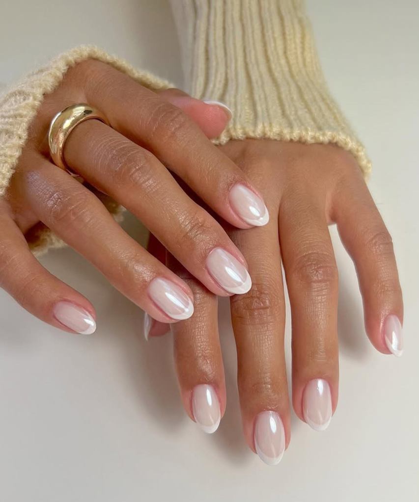 Classic French but with a soft, icy white tip.