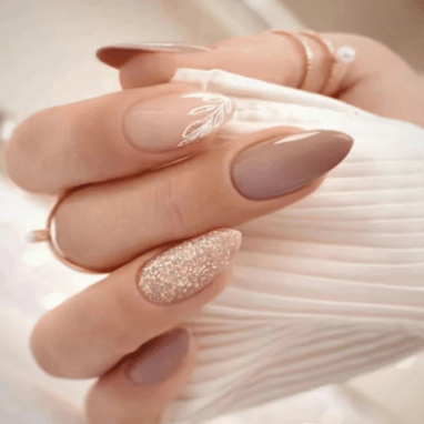 Neutral base + one glitter accent nail.