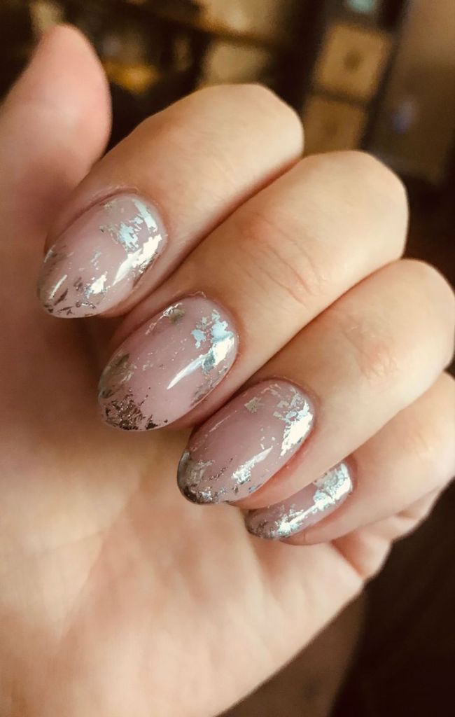 17. Nude Nails with Silver Foil
