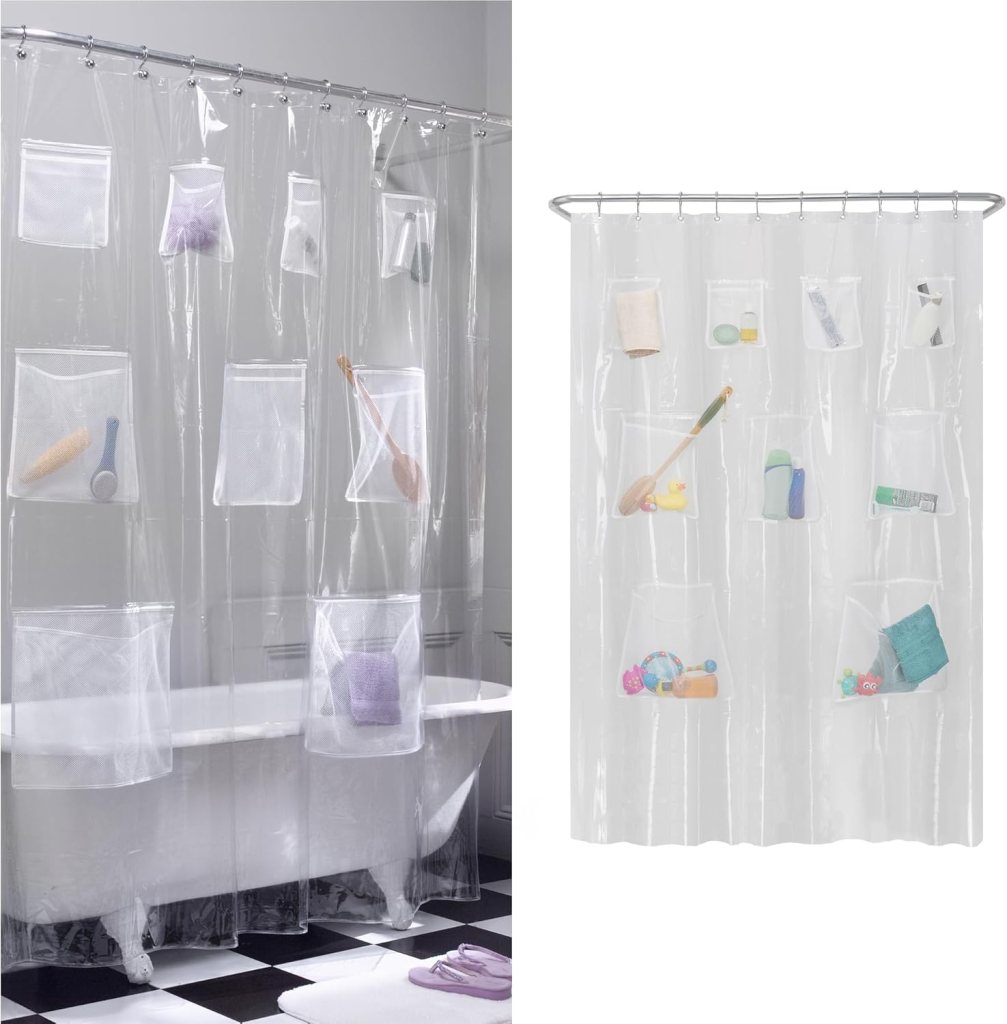 11. Shower Curtain Liner with 9 Storage Pockets