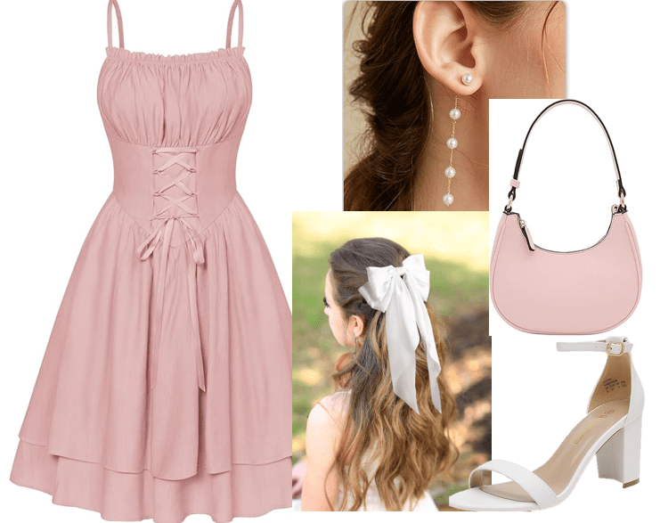 1. Coquette Bow Dress + Soft Pink Accessories