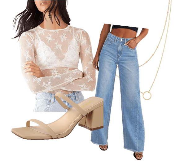 3. Lace Top + High‑Waisted Jeans
