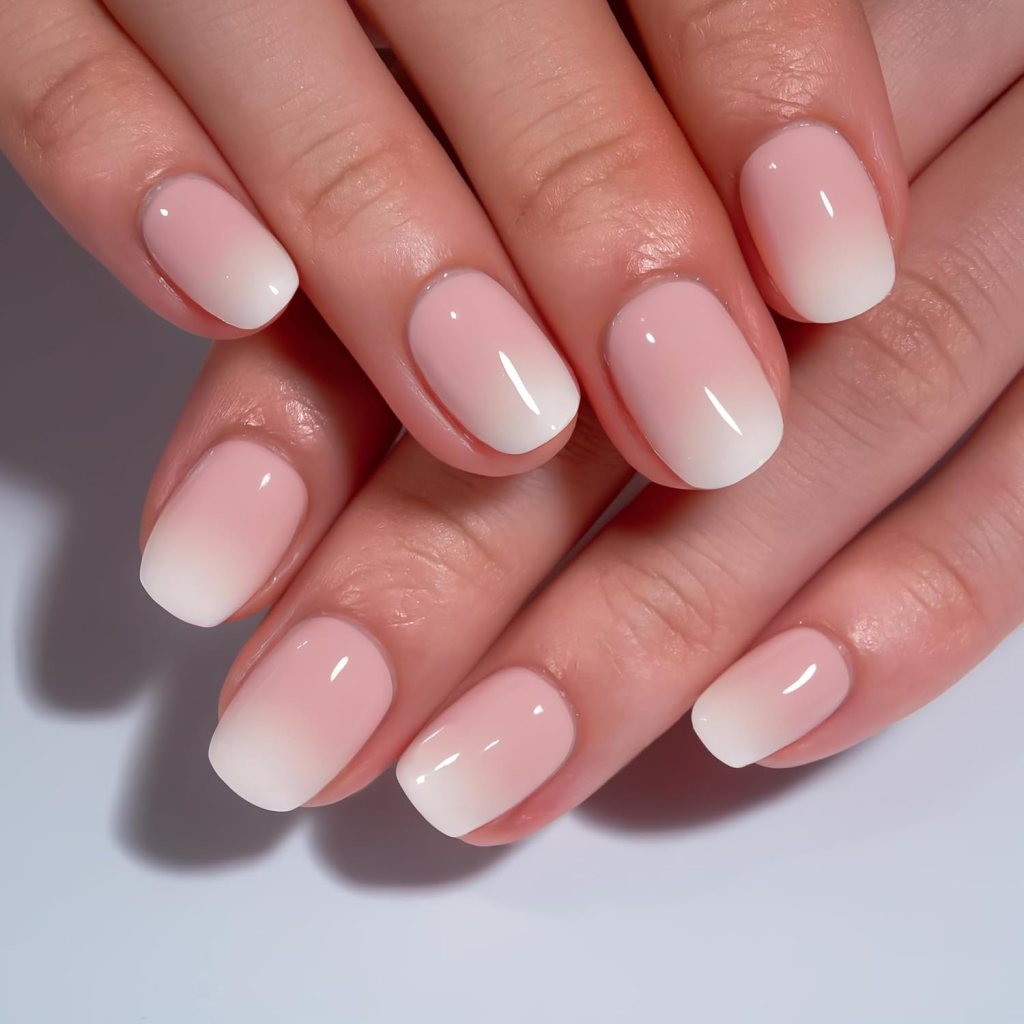 Barely-there pink with sparkle tips.