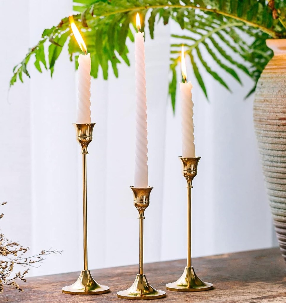 Brass candlesticks are one of the easiest ways to add vintage charm to a room. Their warm metallic finish reflects candlelight beautifully and instantly gives shelves or dining tables that collected-over-time look.