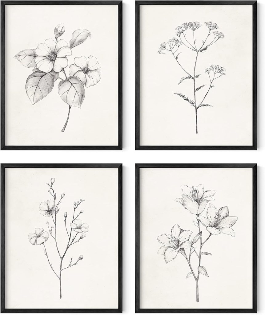 - Black and White Flower Pictures Wall Art Unframed