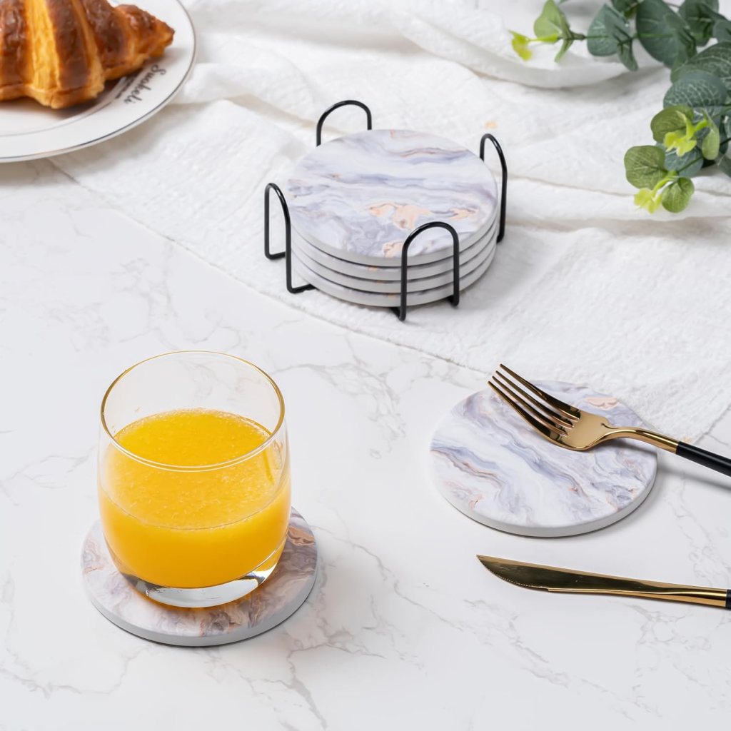 Marble coasters are both practical and beautiful. The natural stone patterns add texture to coffee tables or side tables.